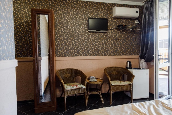 В номерах имеется терраса. Кроме того, в каждом номере базы отдыха «Лесная сказка» в распоряжении гостей кондиционер и шкаф.