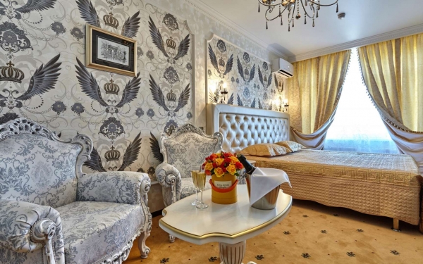 Каждый номер Бутик-отеля «Монарх» — это высочайший уровень, ведь именно комфорт гостей декларируется здесь как главная ценность. Вы можете выбрать роскошный Люкс, королевский свадебный Люкс, номера категории ДеЛюкс или Стандарт. И в каждом из них вы почувствуете себя комфортно, сможете действительно насладиться отдыхом, расслабиться и уединиться. Стилизованная мебель, удобные кровати, современный телевизор, мини-бар, джакузи, купальные принадлежности. Плюс незабываемые подарки от бутик-отеля молодоженам и юбилярам. В нашем бутик-отеле без выходных работает ресторан «Прованс». Два банкетных зала на 50 и 100 мест созданы для идеального проведения свадеб, юбилеев и торжеств. Это прекрасное место, которое украсит любую свадьбу, юбилей, торжество или корпоративный праздник. Атмосфера роскоши и настоящего французского шарма, изысканная авторская кухня не оставит равнодушным даже самого взыскательного гурмана. Европейские и русские блюда – это классическое банкетное меню, но по вашему желанию оно может быть сформировано индивидуально. К услугам наших гостей также — бесплатный Wi-Fi. Стойка регистрации работает круглосуточно. Бесплатная частная парковка на месте (предварительный заказ не требуется). В Бутик-отеле «Монарх» лучшее соотношение цены и качества за предоставленные услуги в Краснодаре!