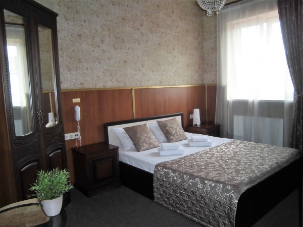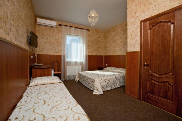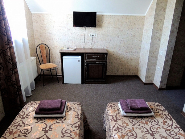 Светлые номера оформлены в классическом стиле в теплых тонах и оснащены кондиционером. В каждом из них есть телевизор, холодильник и собственная ванная комната.