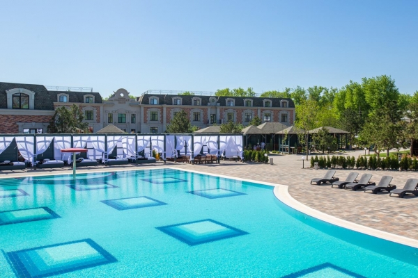 На территории поместья есть все, чтобы получать удовольствие от отдыха: зеленый парк с уютными беседками, детские игровые зоны, просторные апартаменты графского особняка и большой открытый бассейн.