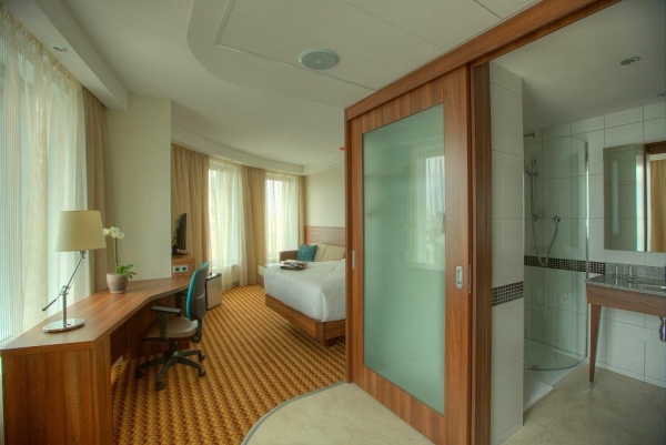 Светлые номера оборудованы кондиционером, телевизором. сейфом и рабочей зоной. Гости могут пользоваться собственной ванной комнатой с феном.