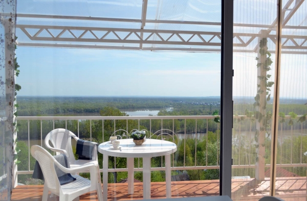 - большие террасы с видом на город, лес и реку