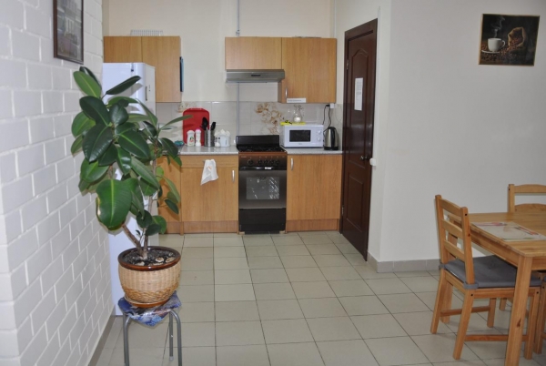 На первом этаже гостиницы располагается общая кухня, на которой гости могут самостоятельно готовить еду. На кухне также располагается несколько столиков, за которыми будет комфортно как по обедать или ужинать, так и просто посидеть-поговорить.