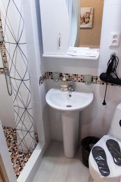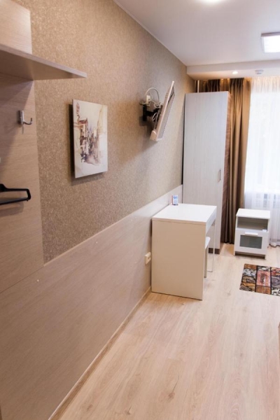 Номера мини-отеля оснащены всем необходимым: кровать, стол, стул, шкаф, телевизор, светонепроницаемые шторы, собственная ванная комната с душем, туалетом, раковиной, феном и бесплатными косметическими принадлежностями, бесплатный WiFi.