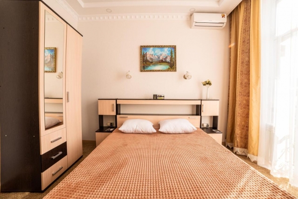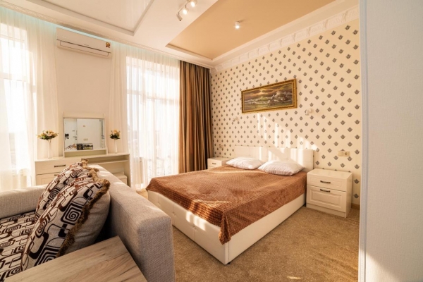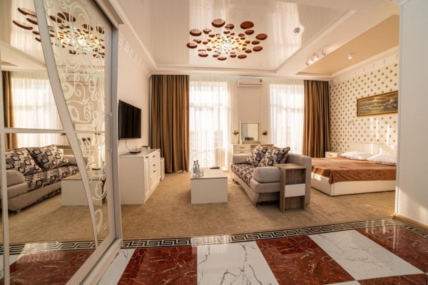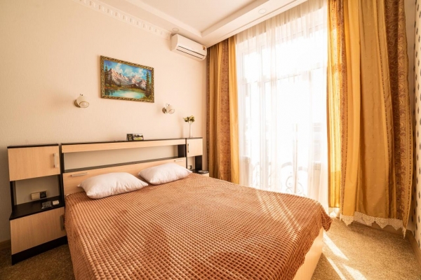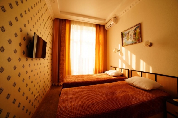 Элегантно оформленные номера. Каждый номер разделен на спальную зону и зону отдыха. Номера расположены на первом и втором этаже, оборудованы спутниковым телевидением, высокоскоростным интернетом, кондиционером.