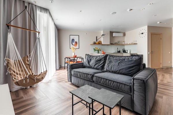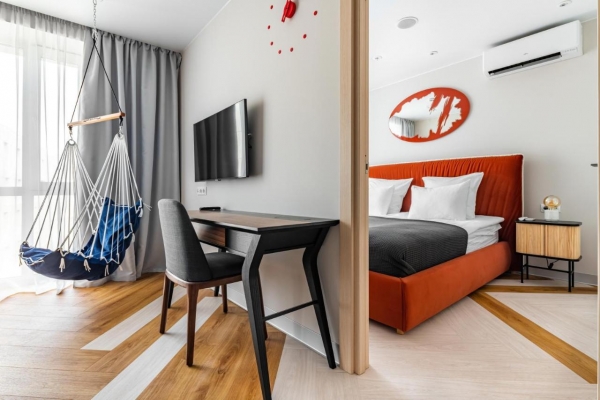 Апартаменты YES SEVEN – идеальный вариант для гостей, которым важен высокий уровень сервиса, комфортное размещение и стильный дизайн пространства с особым вниманием к деталям. Апартаменты площадью 40 м представляют собой гостиную зону, совмещенную с полностью укомплектованной кухней, отдельную спальню с улучшенной шумоизоляцией и ванную комнату. Спальные места позволяют удобно разместиться любому количеству гостей от 1 до 4 человек. Апартаменты площадью 54 м представляют собой гостиную зону, совмещенную с полностью укомплектованной кухней, отдельную спальню с улучшенной шумоизоляцией и две ванных комнаты. Спальные места позволяют удобно разместиться любому количеству гостей до 5 человек. В наших апартаментах есть много вещей для того, чтобы сделать Ваше проживание максимально комфортным, расслабленным и оставить незабываемые впечатления: дизайнерская мебель, подвесной гамак, кондиционер, улучшенная шумоизоляция в спальне, телевизор в каждой комнате, стиральная машина с сушкой, крышка-биде в туалете, посудомоечная машина, духовка- микроволновая печь, холодильник, умный чайник, белоснежное белье и полотенца, косметика для ванной, декор, уникальная мебель и многое другое.