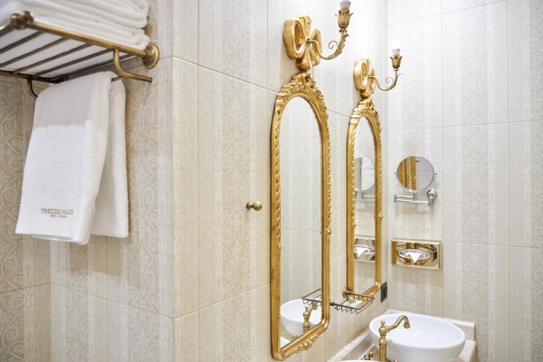 Дворец Трезини предлагает на выбор 21 номер в четырех категориях. Каждый номер – «люкс», отражающий величие царской России. Антикварная мебель, эксклюзивный дизайн, мраморные колонны, роскошные люстры, золотые украшения – интерьеры номеров продуманы до мелочей. Окунитесь в роскошь и безмятежность петровской эпохи, выбрав свой номер во Дворце Трезини в Санкт-Петербурге.