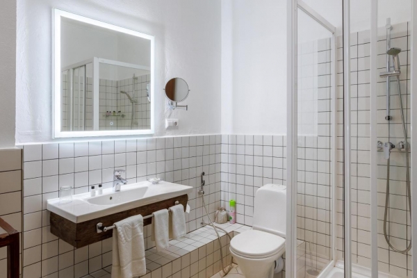 Комнаты оборудованы всем необходимым для работы и отдыха, например, спутниковым телевидением и беспроводным доступом в Интернет. В ванных комнатах — душевые кабины, индивидуальные туалетные принадлежности, халаты и тапочки. Вся вода в «Александр Хаус» проходит пятиступенчатую систему очистки. Все комнаты являются некурящими. Для курения отведены специальные зоны.