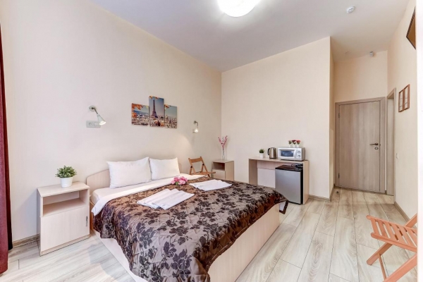 Все номера выполнены в современном стиле, в светлых теплых тонах, и оборудованы всем необходимым для комфортного проживания гостей. Необходимая кухонная техника, а также стиральная машина, утюг и фен есть в общей столовой зоне. В качестве бонуса гостям предлагается зерновой кофе, листовой чай. На всей территории отеля бесплатно доступна интернет-сеть Wi-Fi. Невысокие цены на проживание в мини-отеле Демократ на Невском 95 сочетаются с высоким уровнем комфорта.