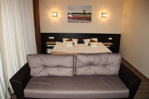 Новый современный отель, отвечающий международным стандартам. В тихом и зеленом районе города Луга, в 20 минутах до центра города.