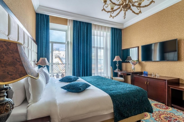 каждый номер имеет отдельную ванную комнату с туалетными принадлежностями, систему кондиционирования, бесплатный wi-fi, спутниковое телевидение, мини-бар, халаты и тапочки. Окна номеров выходят на Невский проспект или на тихий двор.