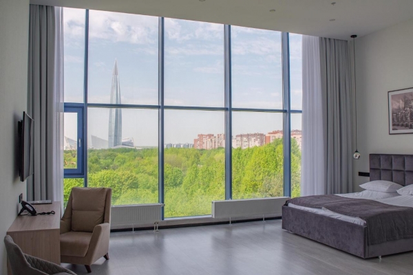 К размещению гостей предлагаются 38 номеров, от Стандартного с мансардным окном до уникальных номеров категории Супериор и Королевский люкс с видовыми ванными комнатами с джакузи. Дизайн отеля выполнен в Эко стиле, использовавшиеся материалы и формы создают атмосферу комфорта и единения с природой. Для гостей отеля с 10.00 утра открывается вся инфраструктура ТРЦ "Питерлэнд" : самый большой и посещаемый Аквапарк Санкт-Петербурга "Питерлэнд", магазины самых популярных брендов, рестораны, кафе, кинотеатры, детские игровые комнаты, скалодром, веревочный и батутный парки, аэротруба и знаменитый Black star karting, а также множество других интересных развлечений.