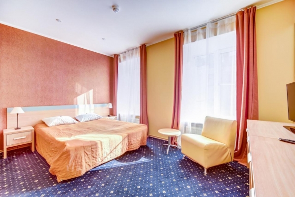 Интерьер просторных и светлых комнат исполнен в классическом стиле и светлых пастельных тонах. В каждом номере Вы найдете элегантную меблировку, удобную двуспальную или две отдельных кровати, письменный стол, настольную лампу, большой плазменный телевизор, телефон и индивидуальный санузел; а в номерах класса "делюкс" и "люкс" также есть кондиционер и сейф. На всей территории отеля бесплатный Wi-Fi. Все номера отеля строго некурящие! По запросу может быть установлена Допкровать стоимостью 900 рублей за ночь.