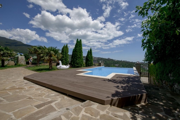 У подножья горы, на берегу горного озера, в экологически чистом районе. На границе с Ялтинским горно-лесным заповедником. Чистый целебный воздух, развитая инфраструктура, закрытая территория- все, что нужно для отдыха и жизни! Из окон открывается великолепный панорамный вид на море, горы и город-солнечную Ялту! Удобный заезд с трассы Ялта-Симферополь, удобное и удачное расположение делает гостевой дом "НАД МОРЕМ" доступным для гостей. Все номера люкс класса, спутниковое ТВ, укомплектованы техникой и мебелью. Есть закрытая охраняемая автостоянка. Индивидуальный подход к каждому клиенту. Вы сможете засыпать и просыпаться вместе с Ялтой и черным морем, которые видны не вставая с кровати. А чашка чая или кофе выпитая с утра на террасе гостевого дома с восходящим из-за гор солнцем создаст Вам настроение на целый день. Гостевой дом «НАД МОРЕМ» расположен в Васильевке — это один из районов города Ялта. Ранее поселок назывался Ай-Василь, что в переводе означает «святой Василий». Васильевка находится вблизи гор в тихом, спокойном месте и от сюда начинается множество горных маршрутов. В этом районе практически нет многоэтажных домов и отовсюду открывается вид на Крымские горы, город и море. Буквально в пяти минутах ходьбы расположено горное озеро с одноименным названием. Здесь Вы можете порыбачить или устроить пикник.