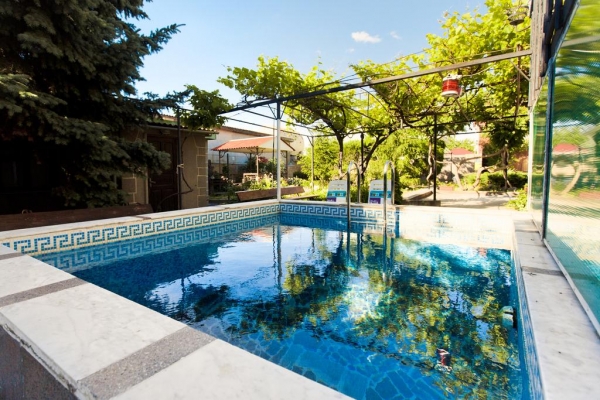 На территории гостиницы особое внимание уделяется оформлению, за зелеными насаждениями гостиницы следит высококлассный ландшафтный дизайнер. Рядом предусмотрена парковка. Для отдыхающих разместили барбекю, бильярд, шезлонги, мангал, бассейн и многое другое. Снять номер в Севастополе, в гостинице Мабир стоит заранее, воспользуйтесь формой на странице Контактов.