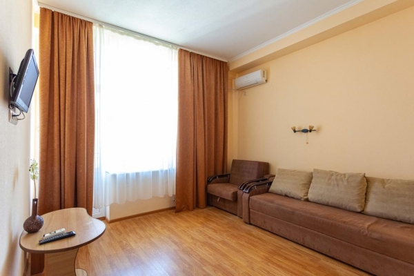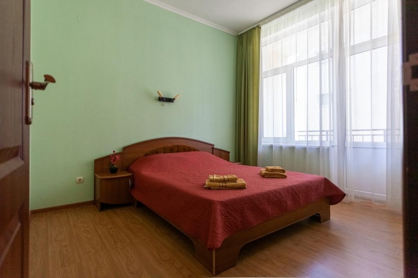 Отель Сонис находится в 300 метрах от пляжа. Это может показаться немалым расстоянием, но, на самом деле, дорога до пляжа занимает минут 10. Корпус гостиницы имеет 4 этажа и разделен на 4 подъезда. Номерной фонд гостиницы включает в себя 35 номеров категорий Стандарт и Улучшенный. Это комфортные и просторные номера, оснащенные необходимой мебелью.