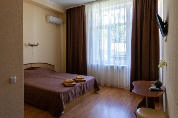 В распоряжении отдыхающих: интернет, телевизор и кабельное ТВ, кондиционер, холодильник, электрочайник, сейф, санузел, туалетные принадлежности. По требованию гостям предоставляются фен, утюг, гладильная доска. Рядом с территорией отеля есть кафе, детская площадка, а также охраняемая автостоянка (стоимость услуги - 100 руб. в сутки). Летом на набережной работает продуктовый рынок.
