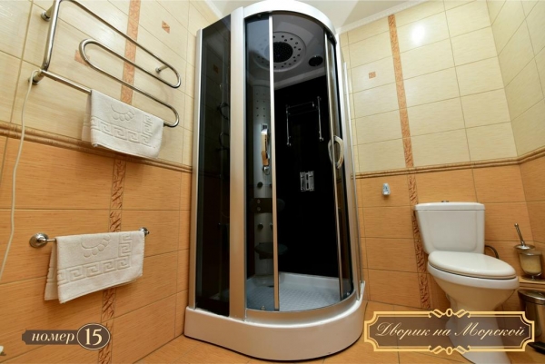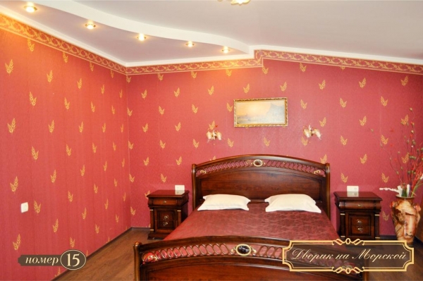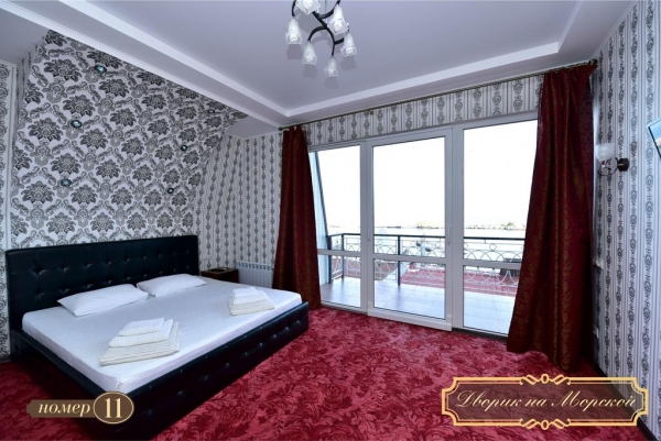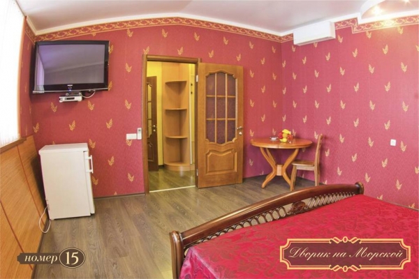 «Дворик на Морской» расположен в самом центре Ялты, в минуте ходьбы от пляжа. Комплекс располагает 15 светлыми и просторными номерами. В гостинице есть, как однокомнатные, так и двухкомнатные номера. В каждом номере есть собственная кухня, ванная комната с душевой кабиной, кондиционер и телевизор с возможностью просмотра спутниковых каналов, Wi-fi.