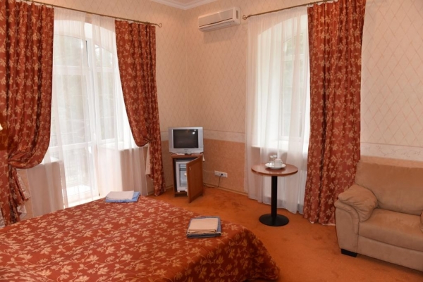 Территория санатория разделена на две части: лечебный корпус и номера Стандарт расположены на улице Мухина 10/3, бассейн и корпуса с номерами Люкс, Полулюкс, Апартаменты, а так же Коттедж — расположены на улице Поликуровская 25. Ниже приведены цены при минимальном, одноместном размещении с питанием и лечением.