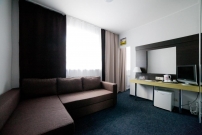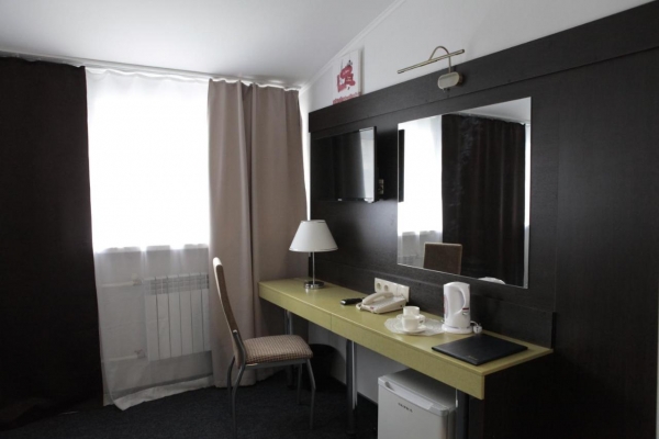 Дизайнеры позаботились о создании современных интерьеров номеров и общих зон отеля. Продумана каждая мелочь в оформлении и отделке, что делает атмосферу в гостинице по-настоящему домашней и теплой. Во всех номерах все предусмотрено для полноценного отдыха и плодотворной работы – рабочий стол, телефон, телевизор с плоским экраном, холодильник, сейф, фен, электрический чайник, посуда, чай, сахар. Для каждого гостя имеется комплект махровых полотенец, халат, тапочки. Косметические принадлежности для душа также предоставляются гостям бесплатно. Все – отличного качества! На всей территории отеля для гостей бесплатный WI-FI, возможность воспользоваться ксероксом, сканером.