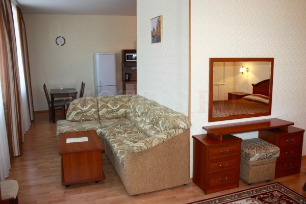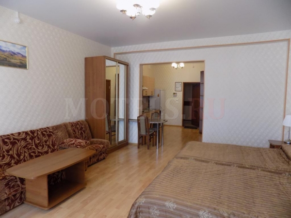 Номера представлены в виде комнаты-студии с оборудованной кухонной зоной.