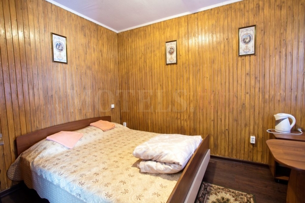 На территории придорожного комплекса расположен уютный и комфортабельный мотель с 11-ю номерами. Гости могут расположиться в 2х, 3х-местных, в семейных номерах или в номере люкс. Каждый номер оснащен отдельной ванной комнатой, телевизором, также имеются два номера с кондиционером. У всех номеров персональный вход с улицы, с возможностью парковки вашего автомобиля рядом с террасой.