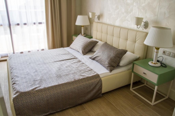 - Семейный 2-комнатный номер со всеми удобствами: 52 кв. м, 2-х спальная кровать, 2 тумбочки, журнальный столик, 2-х спальный раскладной диван, шкаф для одежды, телевизор, сейф.