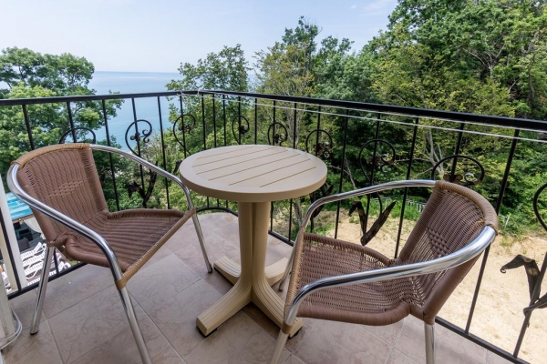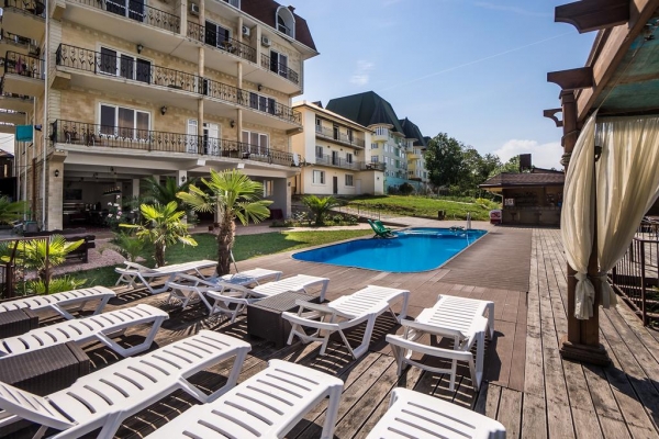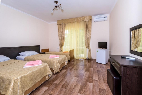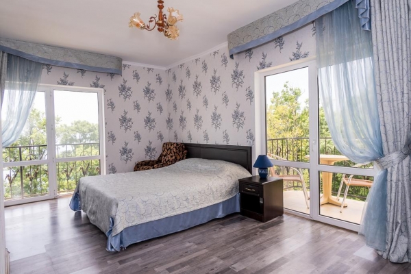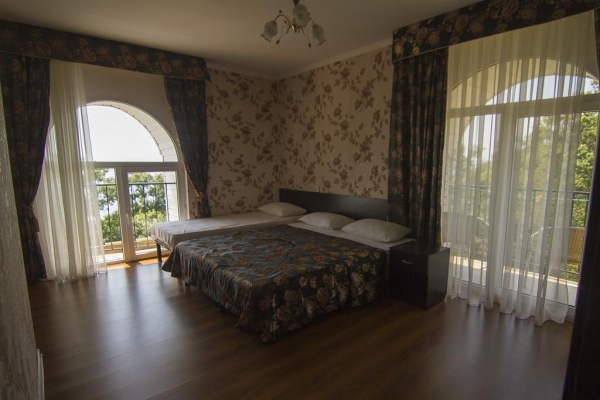 Отель Море расположен в 100 метрах от моря. Никаких автодорог, шума, пыли, людных мест и развлекательных заведений рядом нет! Только звенящая тишина, шум прибоя, пение птиц и ароматы субтропических растений. Собственный безлюдный, чистый и оборудованный шезлонгами, пляж. Для вашего отдыха приготовлены: большая территория с зонами отдыха, бассейн, детская комната с воспитателем и анимационными программами, номера со всеми удобствами и видом на море, кафе-столовая, зоны отдыха в саду и у бассейна. Добро пожаловать!