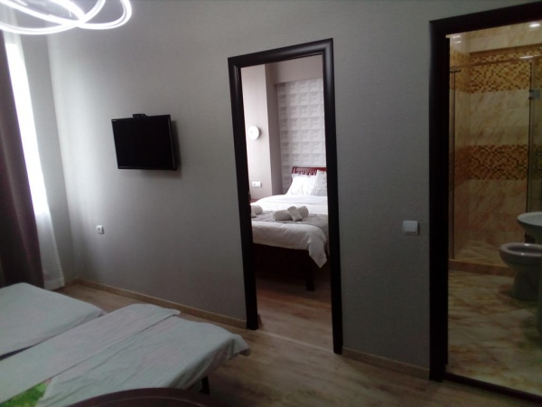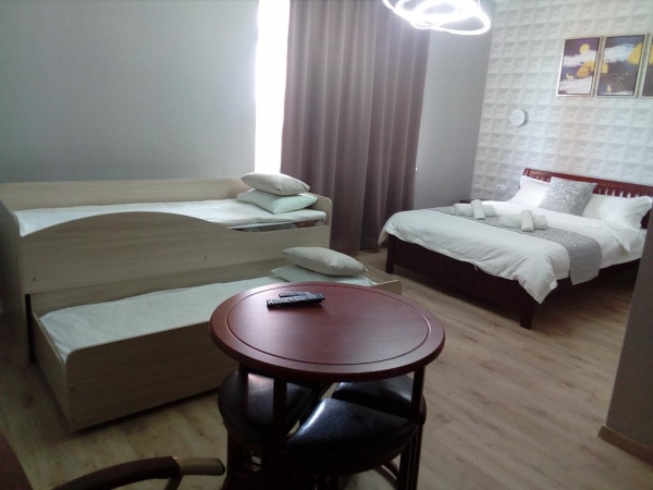 Не рекомендую.За 2500 в номере есть телевизор, две кровати, две тумбы, фен, душевая кабина.Пакет шампуня и геля.Итак, жара страшная, была там в конце июля, кондиционера нет, чайника нет,воды нет, тапочек нет.Гель и шампунь на одного в двухместном номере.Дущевая протекает, после процедуры лужа на полу.Спать с открытым окном невозможно,трасса рядом.Все-таки открыли окно, завоняло навозом, не понятно откуда .На полу в углах пыль, значит не убираются после смены гостей.Полотенца выстираны , но закисли, лучше не вытираться, кислый аромат тела вам обеспечен.Завтрак не входит в стоимость.Цена завышена!Для сравнения , накануне ночевали в Астрахани.Цена номера 2700.Входят:кондиционер,чайник, чашки, 0.5 литровые бутылки воды, три полотенца, банный халат, тапочки, зубные наборы, гель, шампунь, ватные диски, ватные палочки.Белые, свежие полотенца!Почувствуйте разницу!Дочь жила в соседнем номере, сказала ,что от подушки сильно пахло потом.Что это означает, страшно подумать.Если вынуждены будете заселяться в этот отель возьмите свои тапочки, полотенца, все для душа и покрывала, на случай неопрятной постели.А лучше бронируйте другой отель!У нас так вышло, потому что администратор Светлана, по телефону заверила меня, что есть все, а именно :кондиционер,тапки, принадлежности для душа.Оплату попросили сделать сразу!)Заехали после полуночи,так что пришлось там переночевать.