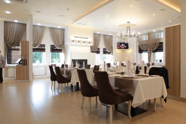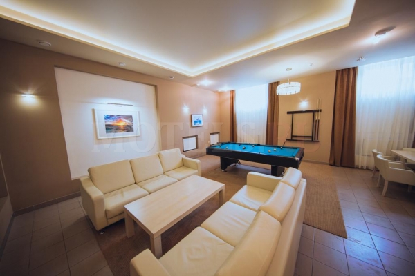 Также в здании гостиницы есть бассейн и хамам. В Отеле есть ресторан с натуральным камином и vip-зал с натуральным камином, поэтому можно очень уютно и с комфортом отдохнуть. Для летнего отдыха в ресторане предусмотрена уличная веранда.К услугам гостей предлагается спортивная площадка на живом спортивном газоне: для игры в минифутбол, волейбол, бадминтон, настольный теннис и т.п. Уличные тренажеры; детская площадка с батутами; беседки для отдыха с мангалами; 2 декоративных пруда с живой рыбой; также оборудованный конференц-зал c современной аппаратурой для проведения конференций и семинаров рассчитанный на 45 человек.