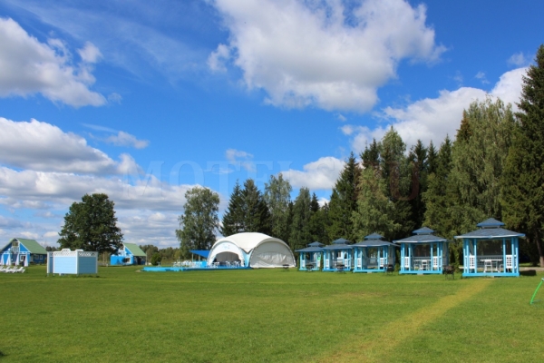 У озера расположился шатер "Парус" на 100 посадочных мест, где вы можете заказать напитки, легкие закуски, пиццу собственного приготовления и многочисленные блюда, приготовленные на мангале.