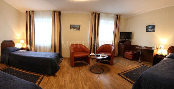 Мы рады предложить Вам 22 уютных номера различной категории, каждый из которых соответствует всем современным требованиям: номера категории «Стандарт», рассчитанные на двухместное и трехместное проживание, с возможностью установки дополнительной кровати и номера категории «Люкс», рассчитанные на комфортное проживание 4 человек. В каждом номере отеля имеется цветной телевизор, телефон, холодильник, доступ к беспроводному интернету, санузел с душевой кабиной.