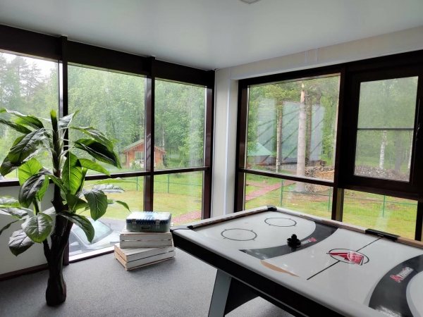 Наш конек – это рыбалка, у нас вы сможете арендовать лодку, и рыболовные снасти. Для детей мы обустроили лягушатник в аквазоне для безопасного купания, составили специальное меню. Для взрослых – вейкборды, катамараны и водяные мотоциклы, велосипеды для лесных прогулок. Также к услугам наших гостей – бильярд, 5 столов для кикера и большой зал с настольными играми. Любителям отдыха с пользой для тела понравятся оздоровительный комплекс с баней и сауной.