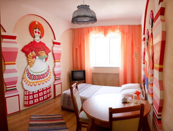 Дизайн каждого номера разработан индивидуально. Остановились ли вы в номере, стилизованном под деревенскую избу с печкой, в номере-яхте или в номере по мотивам «Алых Парусов» - у вас в любом случае будет возможность почувствовать культуру города Кирова.