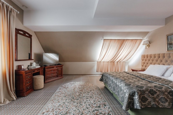 В современном отельном комплексе вы найдете лучшие номера для проживания, изысканную ресторанную кухню от опытных шеф-поваров, развлекательный караоке бар, и удобные просторные помещения для проведения деловых переговоров и семинаров. В отеле «Кремлёвский» вас встретит приветливый, внимательный обслуживающий персонал, и покорит своим изыском продуманный интерьер.