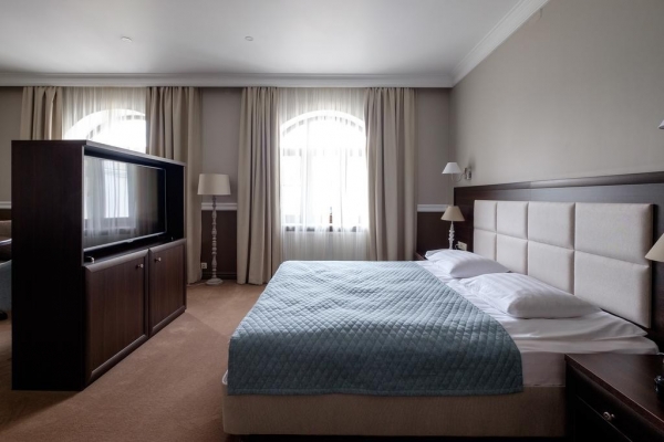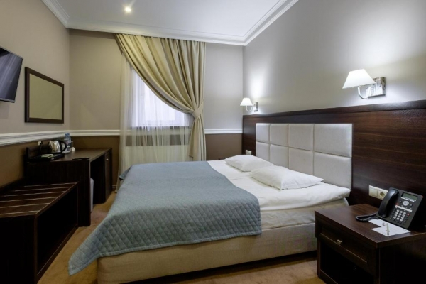 В номерах, оформленных в европейском стиле, находится все необходимое для удобства Гостей: шкаф для одежды, кондиционер, телефон, багажная тумба, телевизор с плоским экраном и спутниковым ТВ. Собственная ванная комната с душем укомплектована феном, тапочками, комплектом полотенец и универсальным средством гигиены.