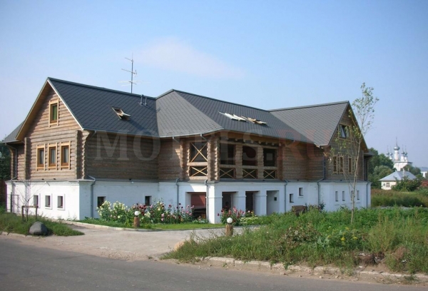 Трёхэтажное здание гостиницы построено в старинном владимирском стиле: каменный первый этаж, верхние этажи – деревянный сруб.