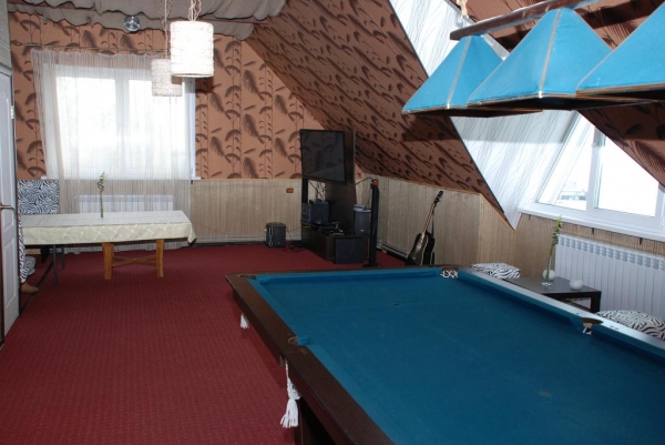 Здесь есть ВСЕ для вашего отдыха: бильярд, большой телевизор, спутниковое TV, караоке, игровая приставка, дизайнерская мебель и большие столы. Так же у нас есть новая баня на дровах, которую можно заказать дополнительно, простыни и веник предоставляются. Удобный подъезд и парковка в любое время года.